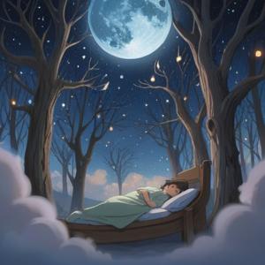 A serene and ethereal scene, depicting a tired spirit resting beneath a luminous moon, surrounded by soft, swirling clouds, gentle stars twinkling in the night sky, a feeling of tranquility and introspection, symbolic elements of rest and renewal, delicate light illuminating the spirit's features, hinting at inner wisdom, 4k