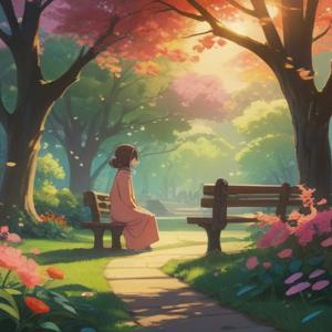 A serene scene depicting a chance encounter with an old acquaintance, vibrant nostalgia, ethereal light illuminating their faces, surrounded by a lush, tranquil park, soft whispers of the past, symbolic elements representing spiritual connection, warm smiles, gentle breeze, harmonious atmosphere, 4k